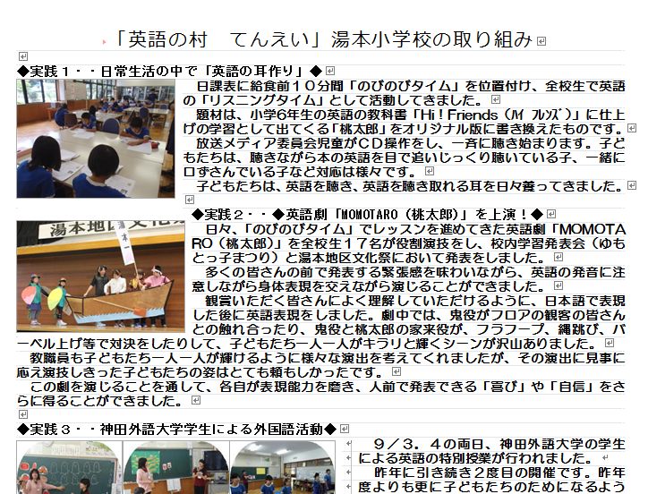 英語の村てんえい 小学校英語活動の取り組み紹介
