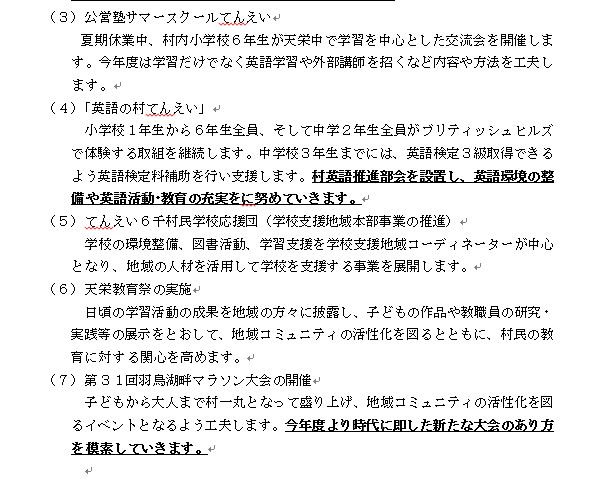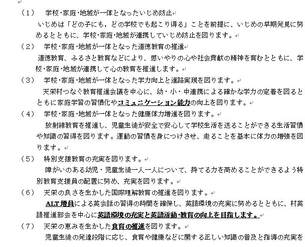 (3) 「つなぐ教育」の実践は、天栄中学校区、湯本中学校区ごとに行う。
