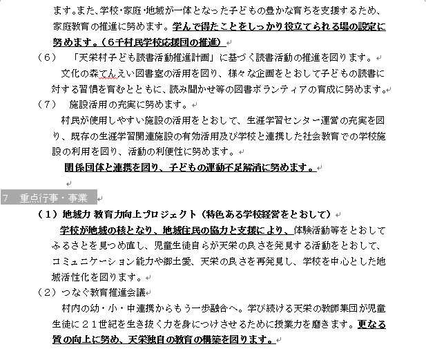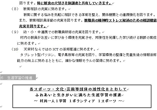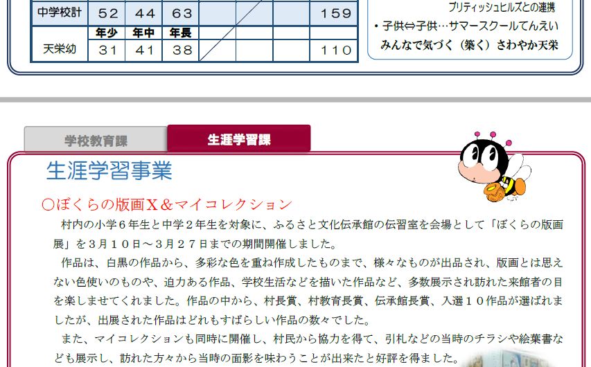 子どもたちの夢や希望の実現のために、村における公教育を様々な側面から関連性を高め、幼・小・中12年間の教育を有機的に行い、その成果を高める。