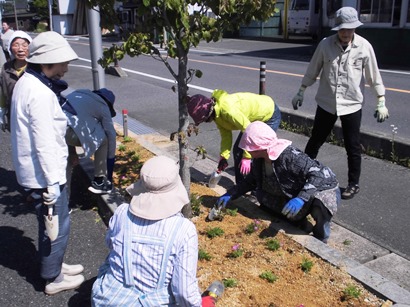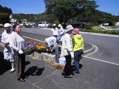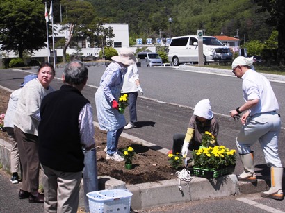 パソコン愛好会の皆さんがボランティアで花いっぱい