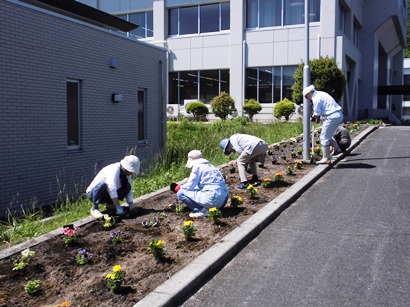 パソコン愛好会の皆さんが5月18日(水)にいつも使用している文化の森てんえいの花壇をボランティアで花いっぱいにしていただきました。さすがに仕事の段取りが違います。
