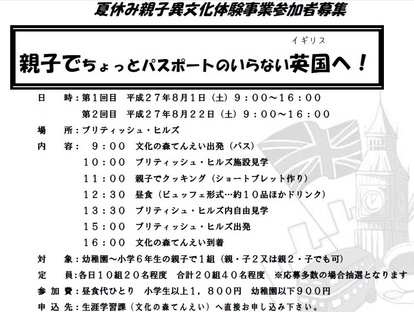 夏休み親子異文化体験募集