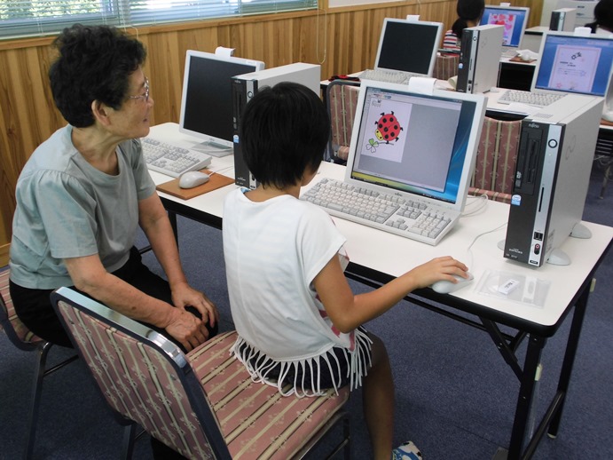 「夏休み子ども教室」で村パソコン愛好会がボランティア