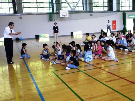 また、夏休み放課後子ども教室の子どもたちも、午後から一緒にレクリエーションを楽しみました。保護者の皆様には放課後子ども教室実施に向けて更なるご理解とご協力をお願いします。