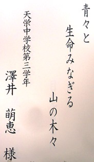制限のある字数のなかで、余計な枝葉をそぎ落として精一杯の表現に感動を思えました。ありがとうございました。審査は天栄村俳句愛好会の皆様にお願いをいたしました。