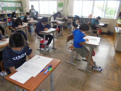 2021年5月27日 10時11分5月27日」(木)6年生児童が全国一斉に行われる、全国学力・学習状況調査に挑戦しました。今年は、国語、算数の2教科と学習に関する質問で2校時から4校時まで実施しました。普段行っているテストとは、少し違った形式の問題で問題量も多いため、戸惑いもあったでしょうが、みんな制限時間一杯まで粘り強く取り組みました。