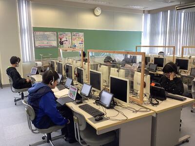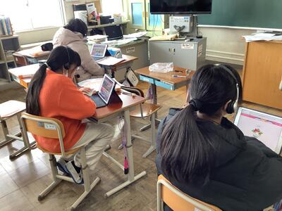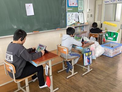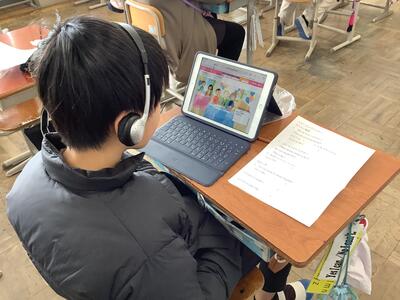 外国語科で学習した英会話をタブレットで一人一人行いました。