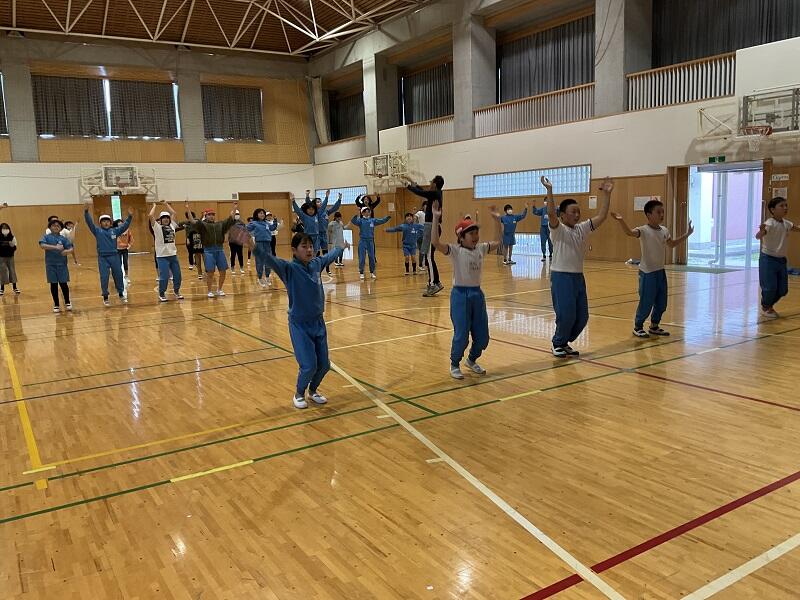 そして、6年生が踊りの見本を見せながら練習しました。振り付けを思い出しながら、