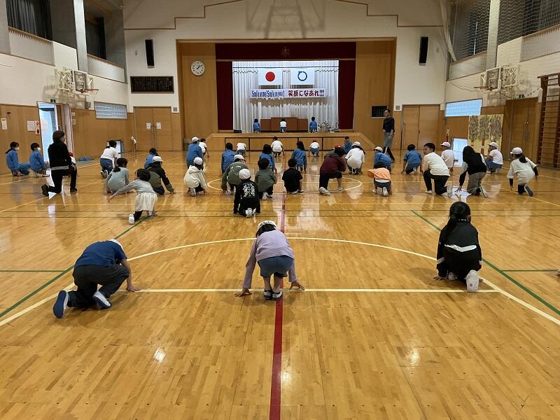 の練習をしました。6年生が昼の放送で呼びかけて体育館に集まりました。