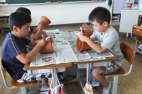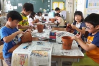 2015年6月9日 17時17分 今年度も「一人一鉢菊作り活動」が始まりました。1年生は何をするのも初めての活動です。8日(月)の2時間目には、校長先生と植木鉢の「絵付け」を行いました。自分の好きなものを自由に植木鉢に描きました。グループになって楽しく、真剣に取り組む姿が見られました。