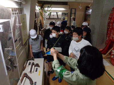 伝承館では多くの資料の説明を熱心に聞いていました。