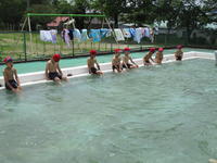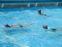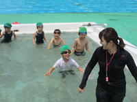 1年生18名と2年生10名は小プールで、4年生20名は大プールで水に潜ったり泳いだりする感覚を取り戻していました。