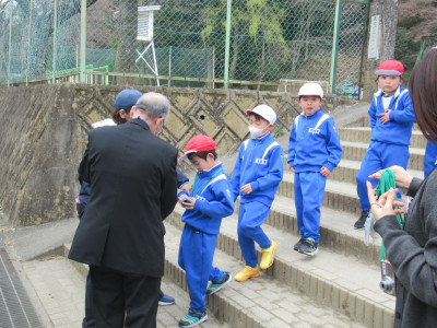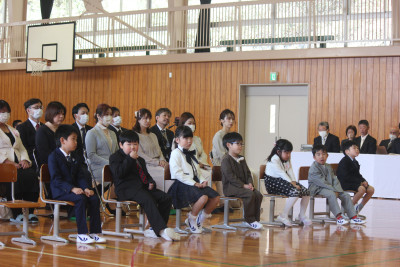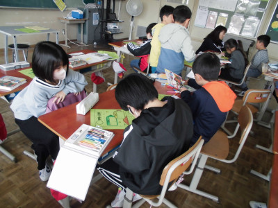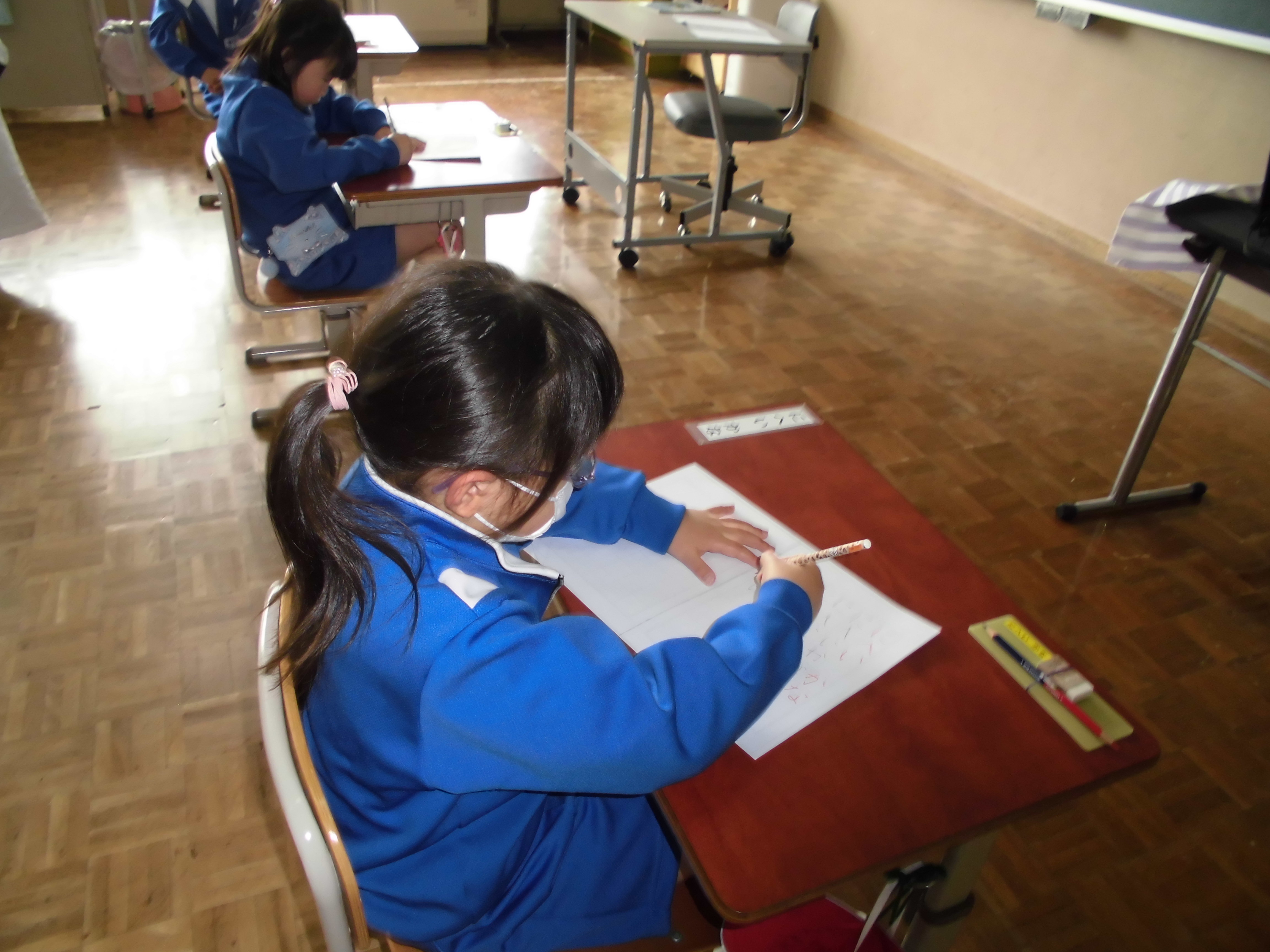 夏休みに書いた国際平和ポスターの受賞者に、いわせオリオンライオンズクラブの方が来校し、授賞式が行われました。自分たちの書いたポスターを選んでいただき、喜びもひとしおでした。