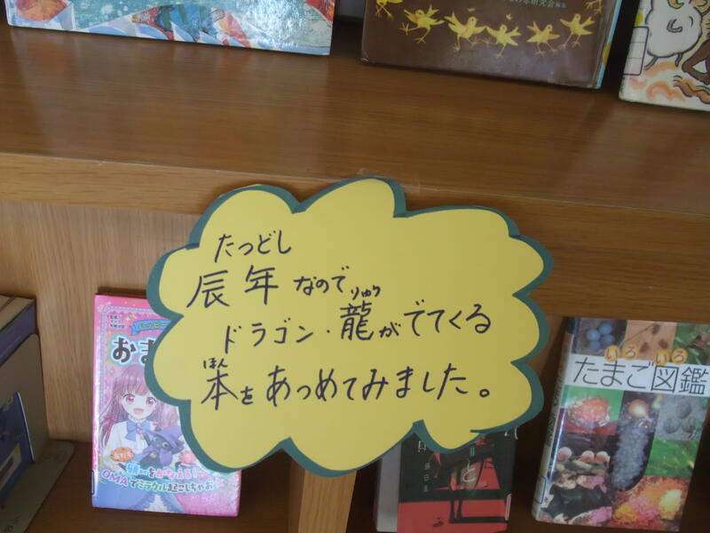 昨日、学校司書の佐藤先生が、辰年(ドラゴン・龍)にちなんだ本を選んでくださいました!
