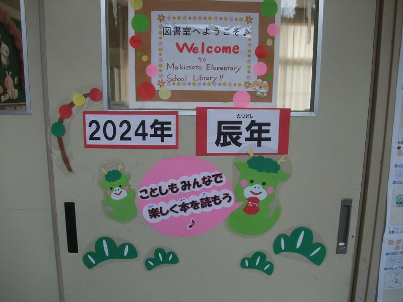 【図書室入り口も辰年バージョンで】