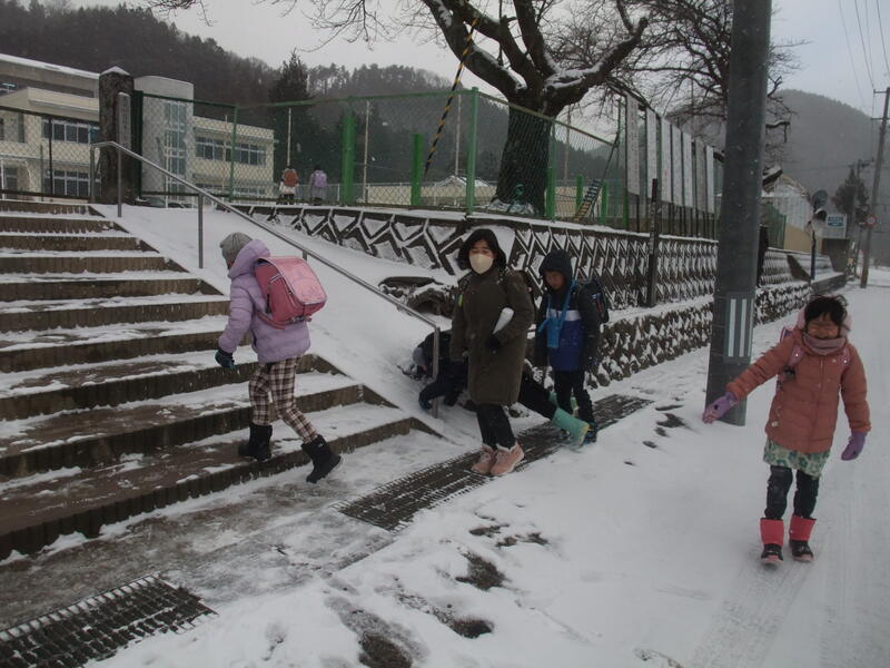 今日は、この冬で一番学校のまわりに雪が積もりました。一面真っ白です。今日も子どもたちは元気に登校しました!