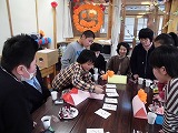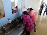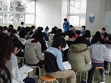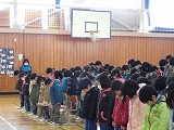 2014年11月21日 06時47分 昨日の読み聞かせは、気分を変えて、階段に座って行いました。