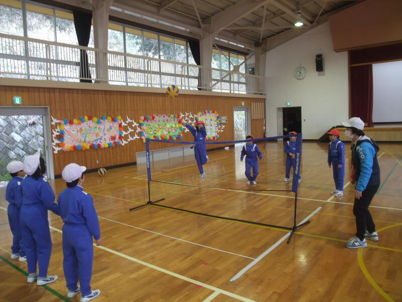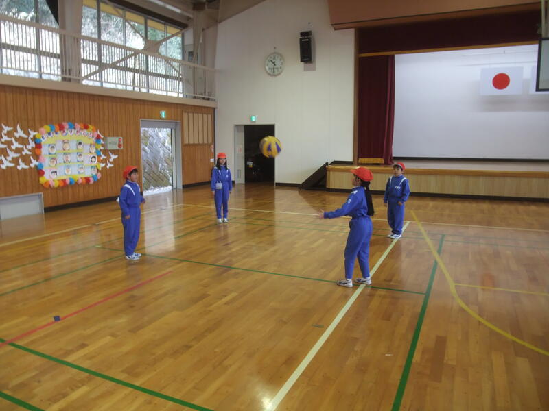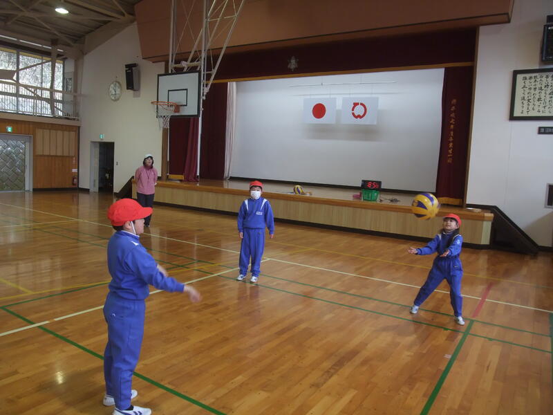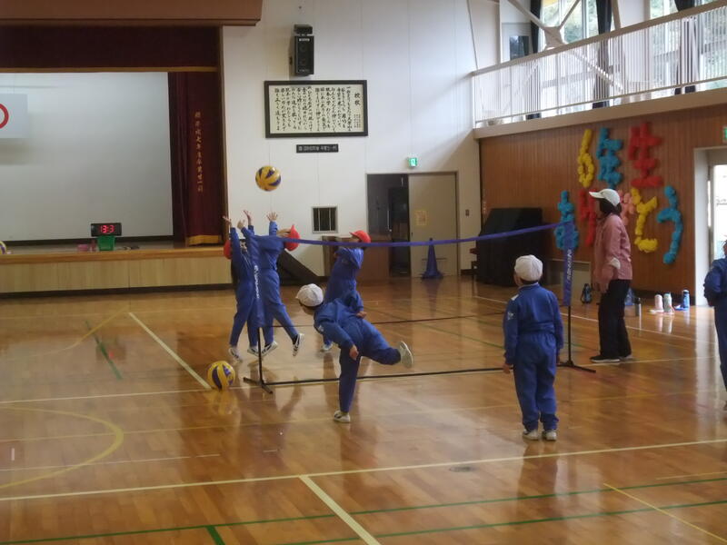 1・2年生は体育科の授業で、ビーチボールを使って、ネット型ゲームを行いました。ボールをキャッチして味方にパスしながら3回以内で相手のコートにボールを返します。床に落としたら点数になるというゲームです。まずはパスとボールキャッチの練習です。なかなか初めはうまくできませんでしたが、徐々にできるようになってきました。後半は、ミニゲームを行いました。歓声をあげながら大変盛り上がりました!