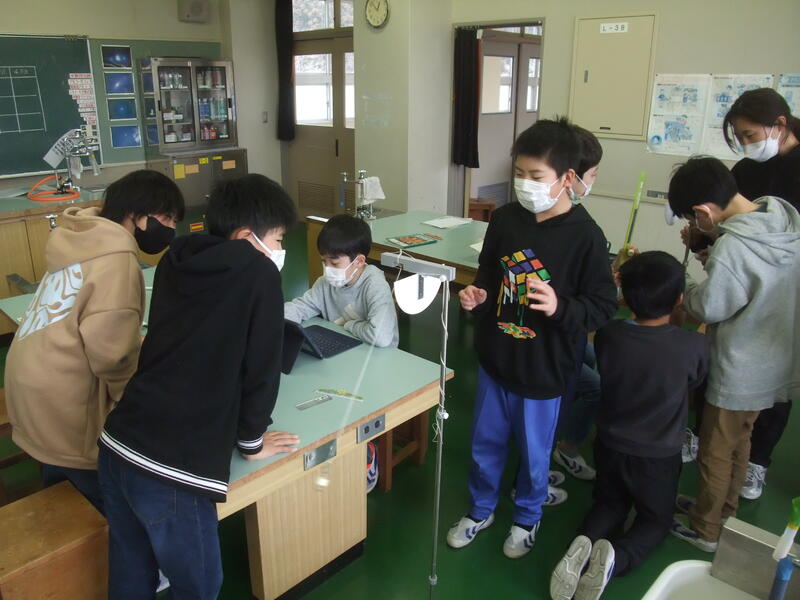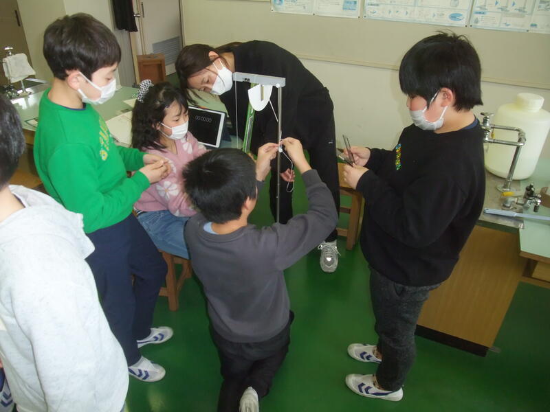 5年生は理科でふりこの実験をしました。ふりこのひもの長さをかえると10往復の時間にどのような変化があるかを実験しました。班で協力しながら実験を行うことができました!