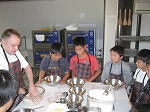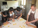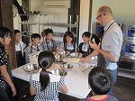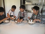写真は、「スコーン作り」の様子です。生地をこねたり、形を整えたり、焼いたり、英語の説明を聞いて、子どもたちは一生懸命に活動に取り組みました。