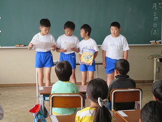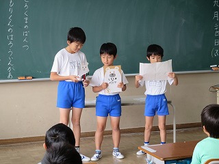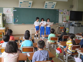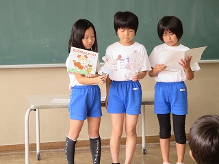 3年生は、1年生に読書のおもしろさを伝えようと、また、1年生は3年生の話をしっかりと聞こうと懸命でした。