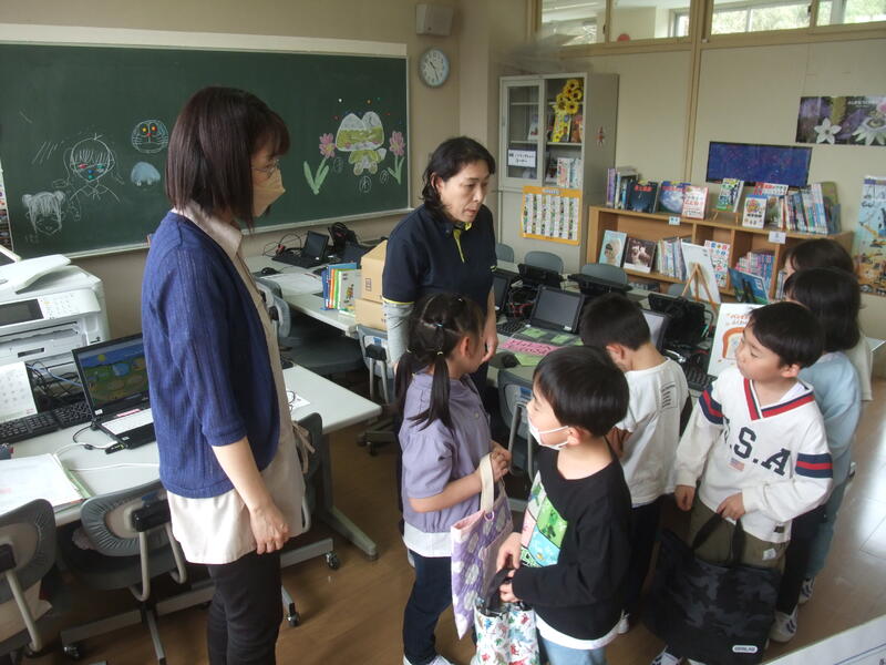 2024年4月18日 10時46分1年生は、初めて本を借りました。学校司書の佐藤先生にやり方を教えてもらいながら、一人ひとり本の貸し出しを体験しました。初めて本を借りることができてとてもうれしそうでした。これからもどんどん本に親しんでほしいと思います。