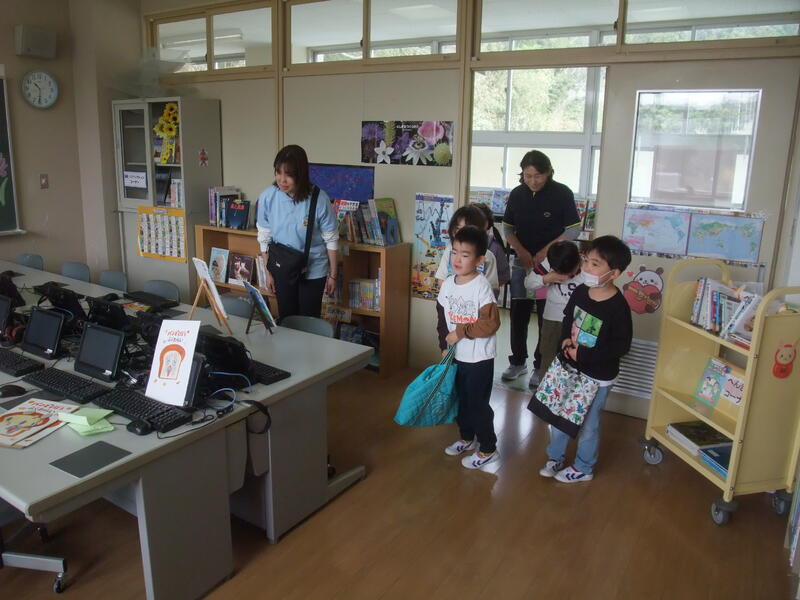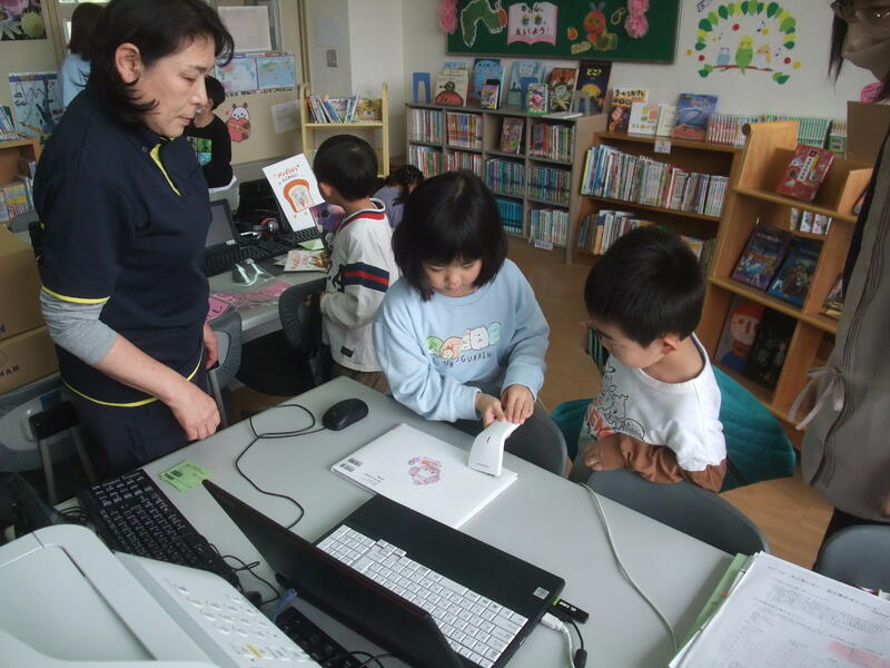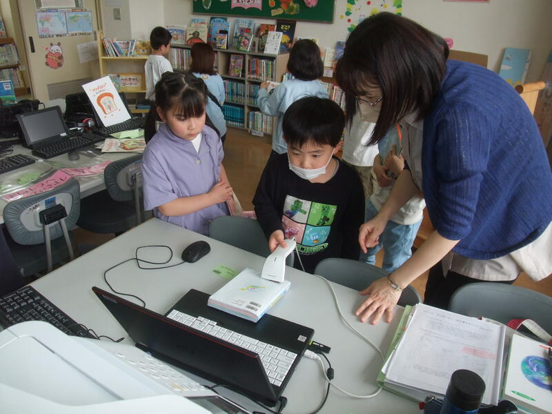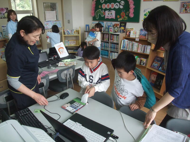 1年生は、初めて本を借りました。学校司書の佐藤先生にやり方を教えてもらいながら、一人ひとり本の貸し出しを体験しました。初めて本を借りることができてとてもうれしそうでした。これからもどんどん本に親しんでほしいと思います。
