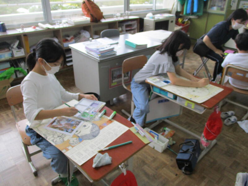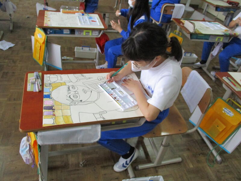2024年10月7日 18時26分4年生の図画工作科です。今回は人物画を描きます。リコーダーを演奏する自分を描いています。人物を描くのは難しいですが、みんな丁寧に描いていました。完成までがんばります!