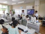 QQE(オンライン英会話レッスン)を体験し、その後担任による外国語活動の授業を行いました。授業後には、県中教育事務所の野原光弘指導主事に、ご指導をしていただきました。