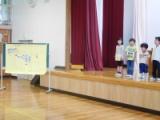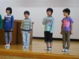 代表のあいさつの後に、2年生の発表がありました。2年生は、生活科で学習したことの発表です。まず、町たんけんをして気付いたこと、その後に、自分の洋服に使われている色の英語をひとりずつ発表しました。「学校の南には、~がありました。」と方位も入れて発表しました。「It is ~。」と学習したことを生かして発表していました。がんばりました。