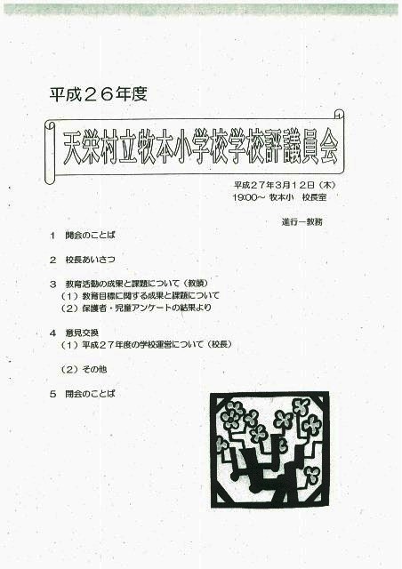 次のPDF文書を、ご覧ください。 → 26学校評議員会要項.pdf