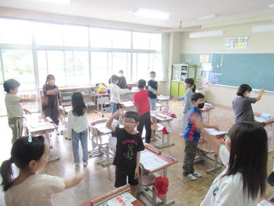 6月は、ALTのジョイス先生が来てくださる月です。今日も楽しく英語を学習しています。