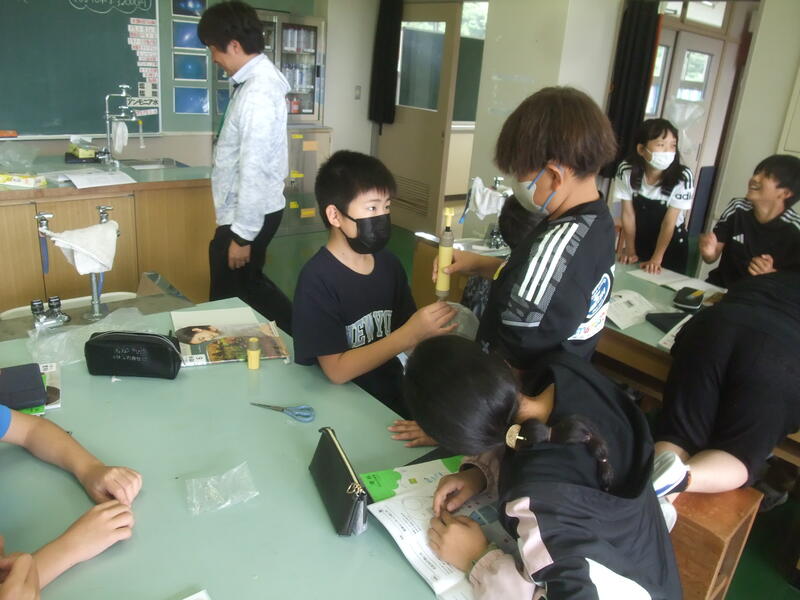 6年生の理科の授業です。今日は、気体検知管を使って、吸う空気とはく空気の二酸化炭素や酸素の量を調べる実験でした。先生から気体検知管での測定方法を教えてもらって班ごとに実験しました。どんな違いがあるのかみんなで確認しました。