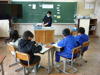 2年生は国語科の物語「お手紙」の時間でした。手紙をもらったことのない「がまくん」と,それをなんとか助けたい「かえるくん」の動作化をやっていまいた。女子はナレーター役をやっていました。