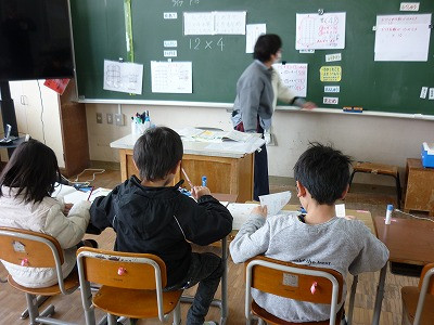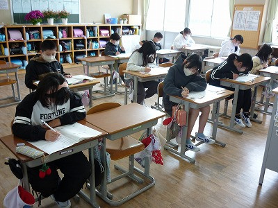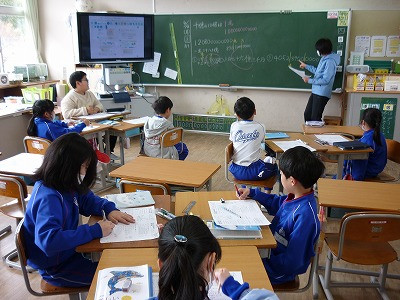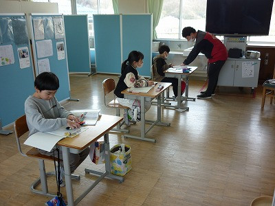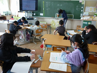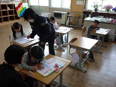 3年生は国語科の時間で,漢字の学習をしていました。挿絵を見ながら,町の様子を説明する文を指定された漢字を使って作文していました。