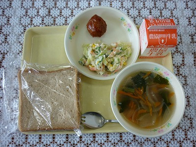2025年12月12日 12時00分12月12日(金) 本日の給食は,麦ごはん,チキンカレー,海藻サラダ,みかん,牛乳でした。