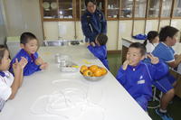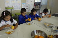 31日、1・2年生が生活科の学習で、干し柿づくりに