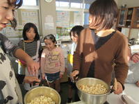 挑戦しました。しぶ柿は、2年生の保護者の方が、もいで