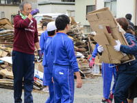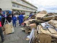 27日、4年~6年生の親子は「資源物回収」を、同じ時