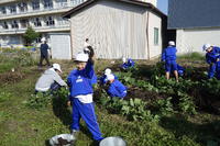 間帯に1年~3年生は「親子奉仕作業」として校庭の草む