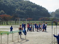 校庭で縦割り班で集合し、自分たちで相談した遊びに