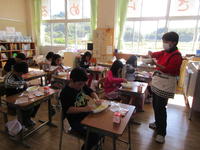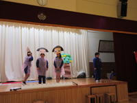 て山わらし太鼓」、中学年の天栄米の総合学習の発表、低学