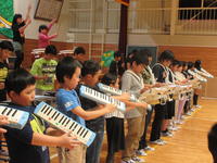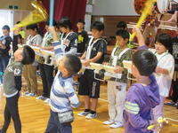 19日のほしぞら集会に向けて、全校合奏「丹波たて山わらし太鼓」
