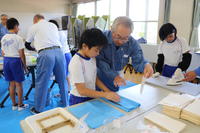 家に宿泊し、翌日、紙すき体験を行い手作りハガキを製作し