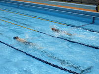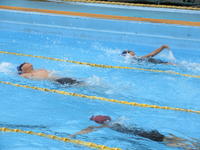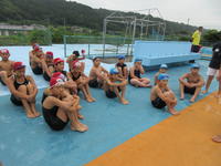 検定会を行いました。ちょうど、晴れ間が見えて、水泳日和