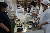 家庭科室で白玉団子作り、科学クラブは、理科室と昇降口で