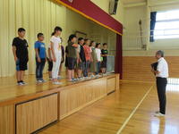 た。次に、2年生と5年生の代表児童が、「1学期の反省