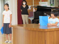 と夏休みの目標」の作文を発表しました。その後、生徒