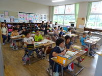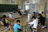 ALTの先生の支援を受けながら、10日、3・4年生が