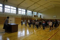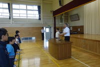 朝、その先生への感謝とお別れの会を体育館で行いました。